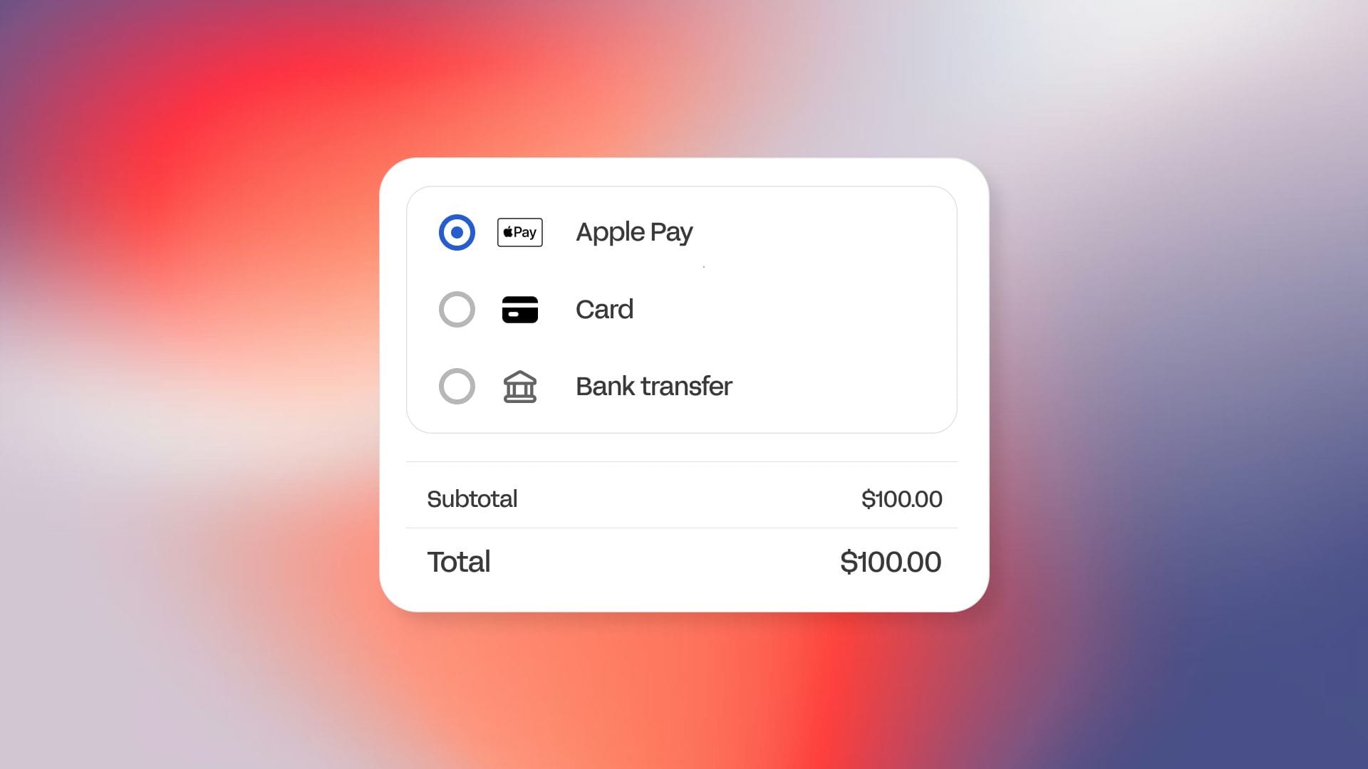 Apple Pay can meaningfully reduce friction on supported devices, but it isn’t a universal payment method. That’s why offering it alongside other payment methods like cards and crypto is key.