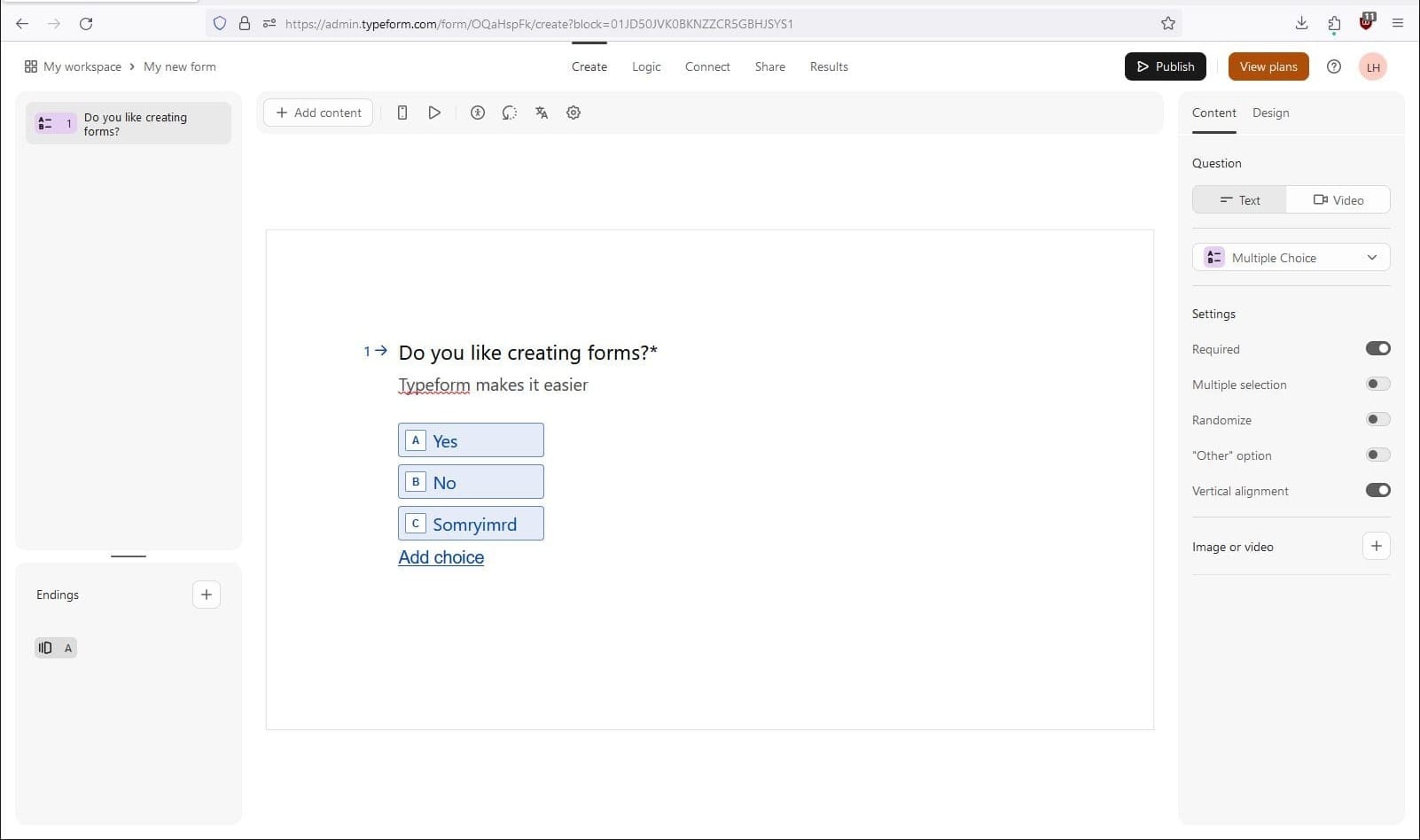 Typeform has a feature-limited free tier, and basic plans start from $25 per month.