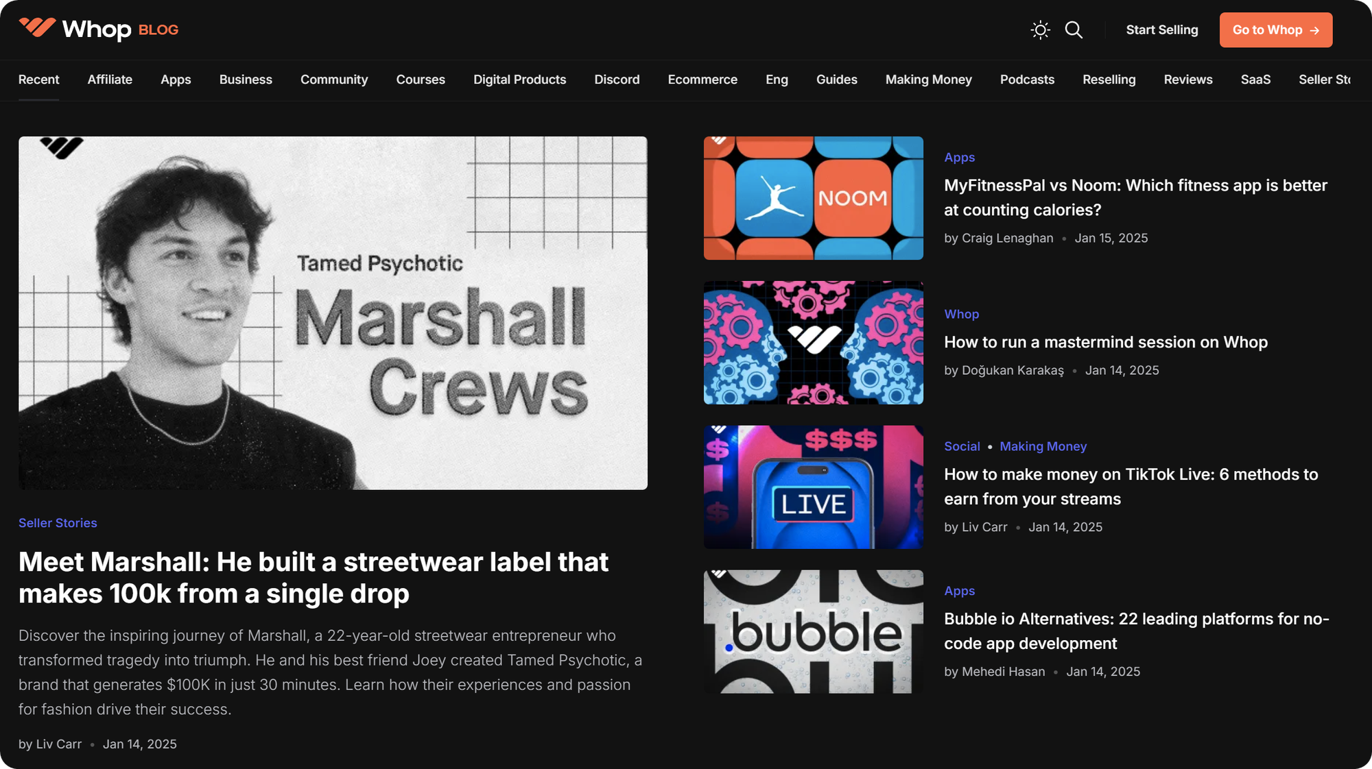If you want to get serious about marketing your B2B SaaS product or company, you’re missing out if you haven’t already checked out Whop. A thriving digital marketplace and creative hub for entrepreneurs, Whop will allow you to sell your digital products and subscriptions while taking care of customer service, B2B payments, and all of those other things that need time and attention.