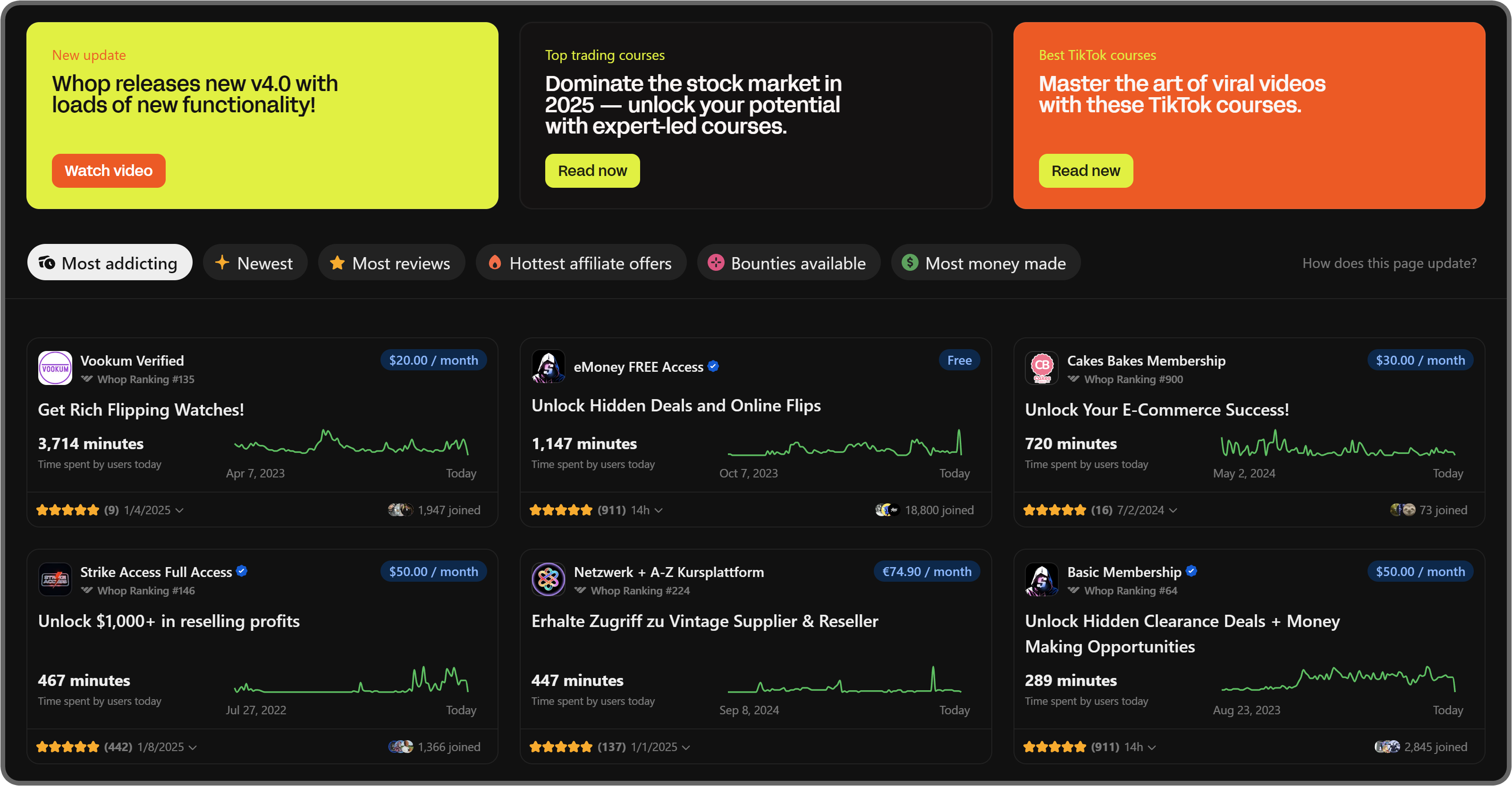 But if you are already a successful reseller, why not launch your own reselling community? Whop is an open marketplace where experts can easily launch groups of their own within their realm of expertise.