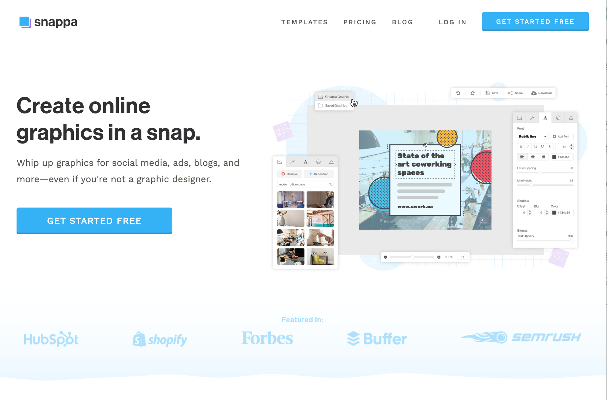 If you're looking for software that makes graphic design simple, then Snappa may be the tool for you. Snappa is a cloud-based graphic design tool. It's designed to be quick and easy to use, assisting you to create graphics for social media, blogs, email marketing, ads, and more. It's a good option for anyone looking to easily create graphics without having to hire a designer.