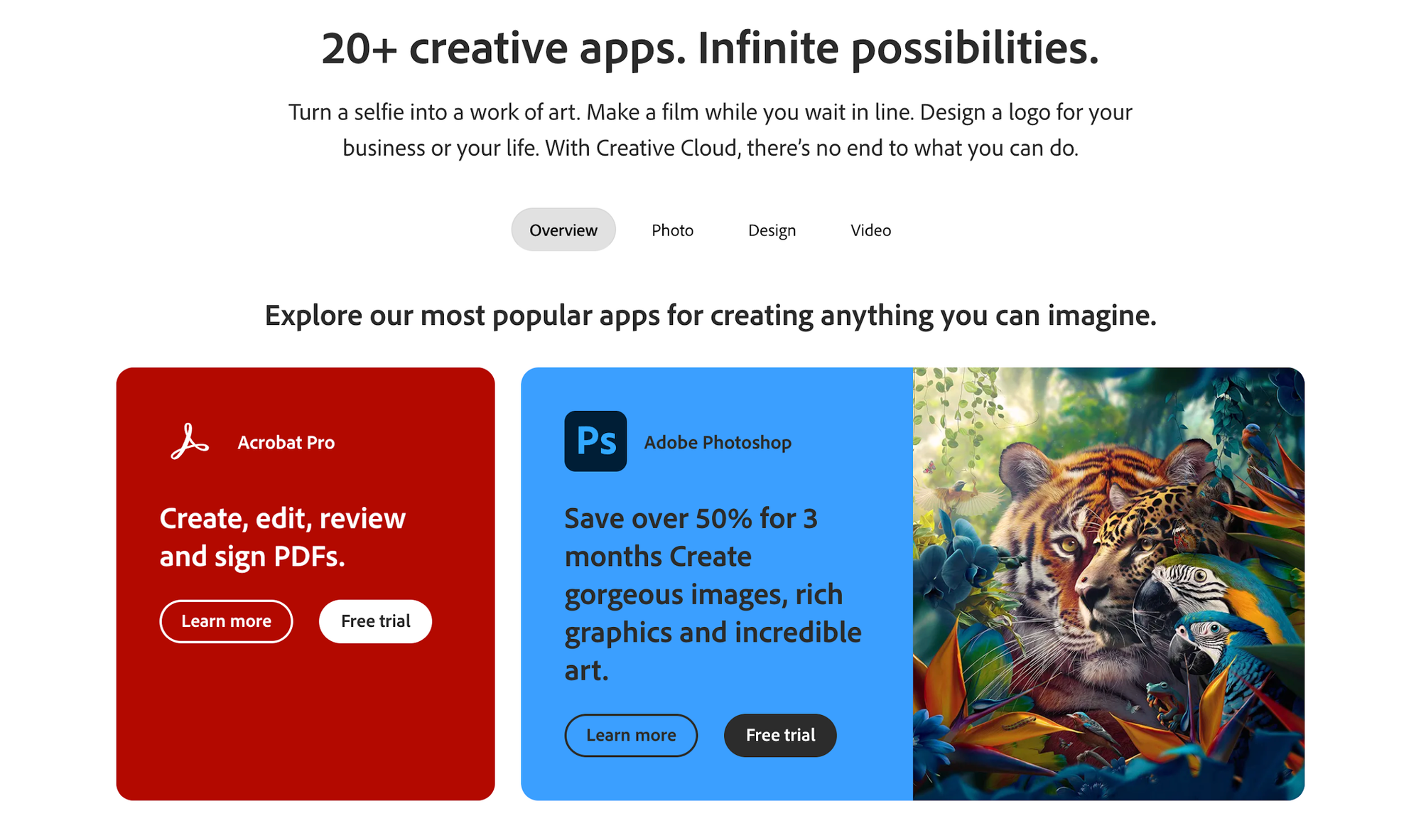 - Creative apps — With 20+ creative apps, Adobe Creative Cloud has endless possibilities for your projects