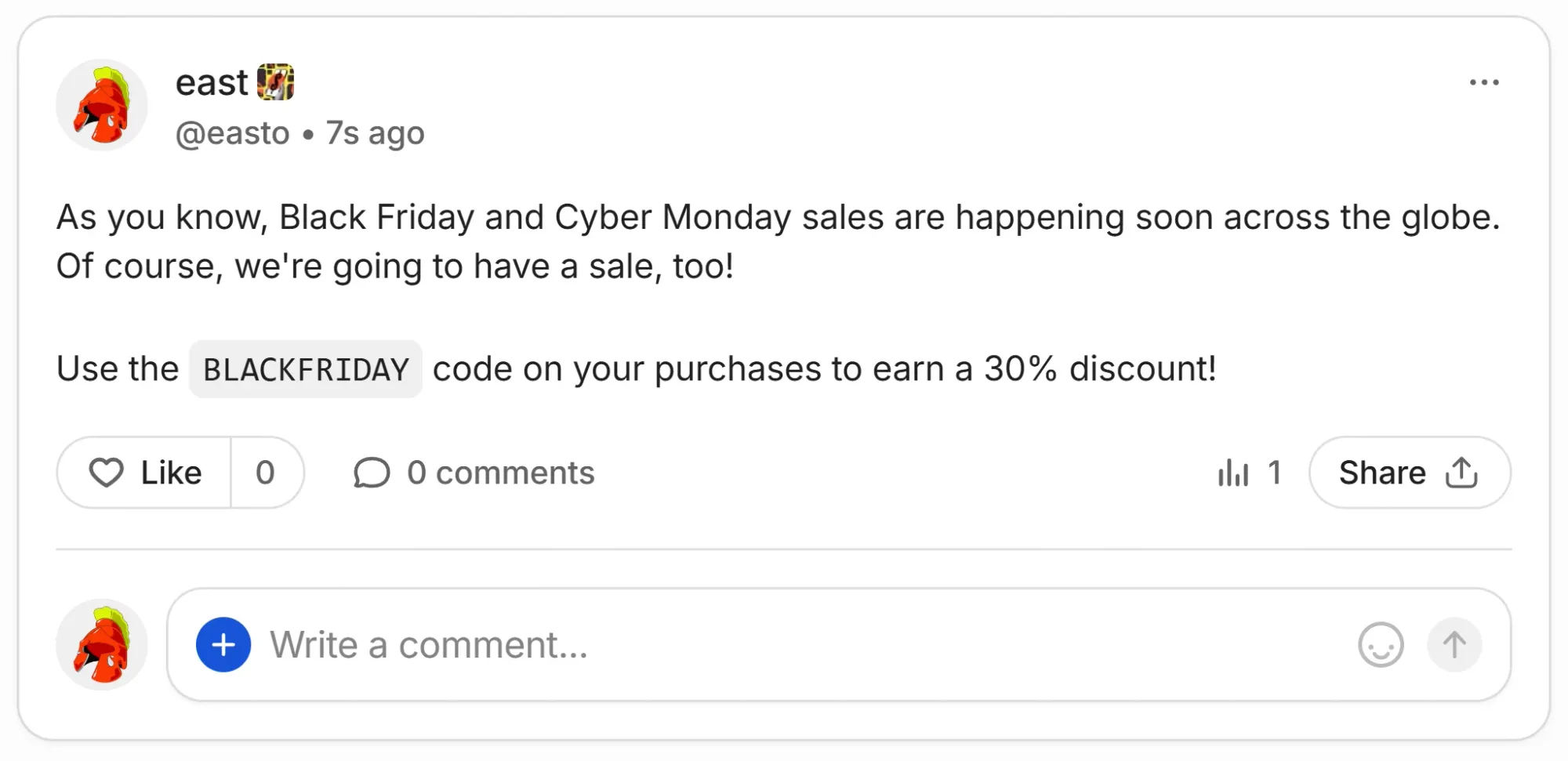Now that you have a promo code, you can boost your sales during the Black Friday and Cyber Monday sales - great job.