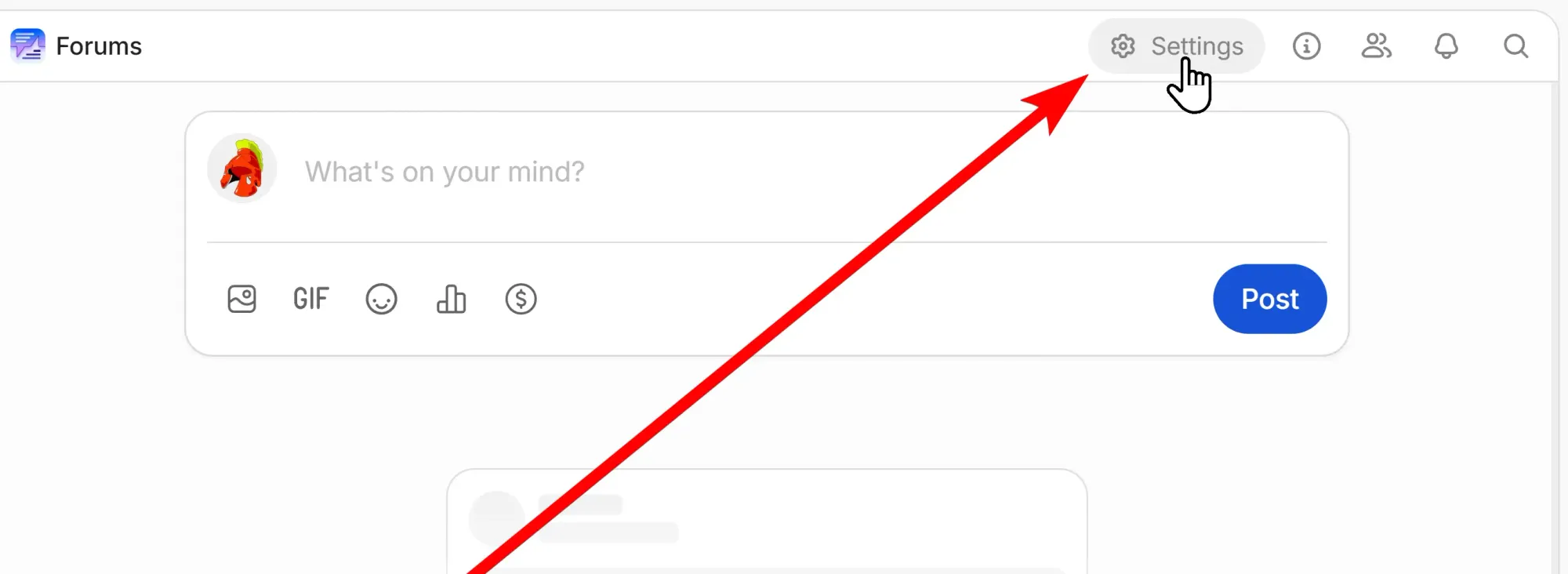 So, let's click on the Settings button at the top right of the Forums app to see its settings.