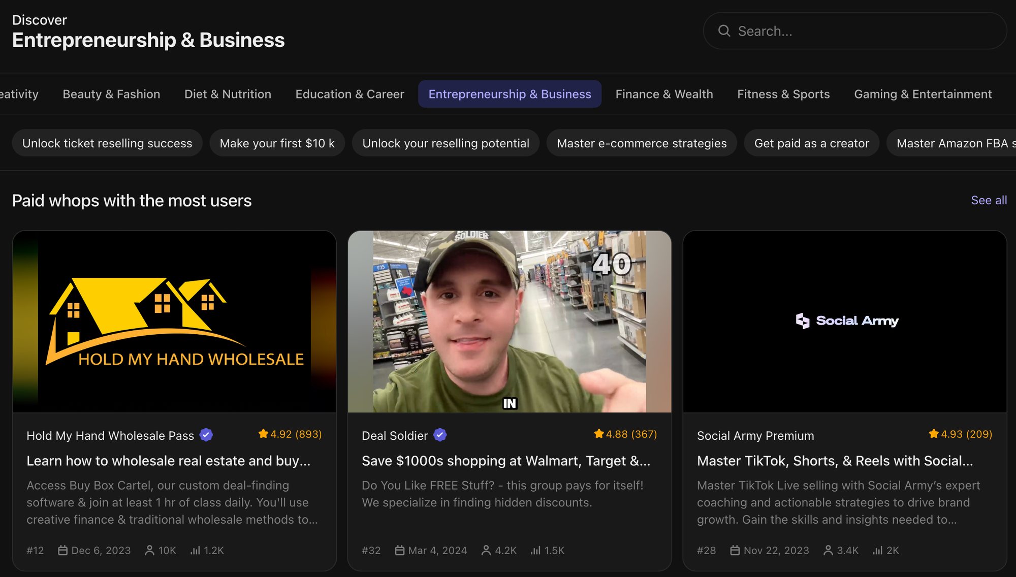Ready to take control of your business finances? Boost your chances of success by exploring Whop. Here, you can learn all there is about how to start, run, and grow a profitable company from the ground up.