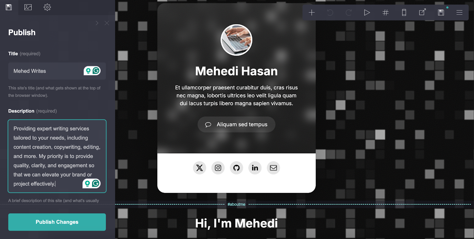 After choosing a template, Carrd guides you on how to add, remove, or change as much or as little content such as text, icons, and photos as you want. With Carrd’s user-friendly drag-and-drop editor, you can move around the elements you want to keep or remove. However, depending on the template, it does have some elements locked inside sections.