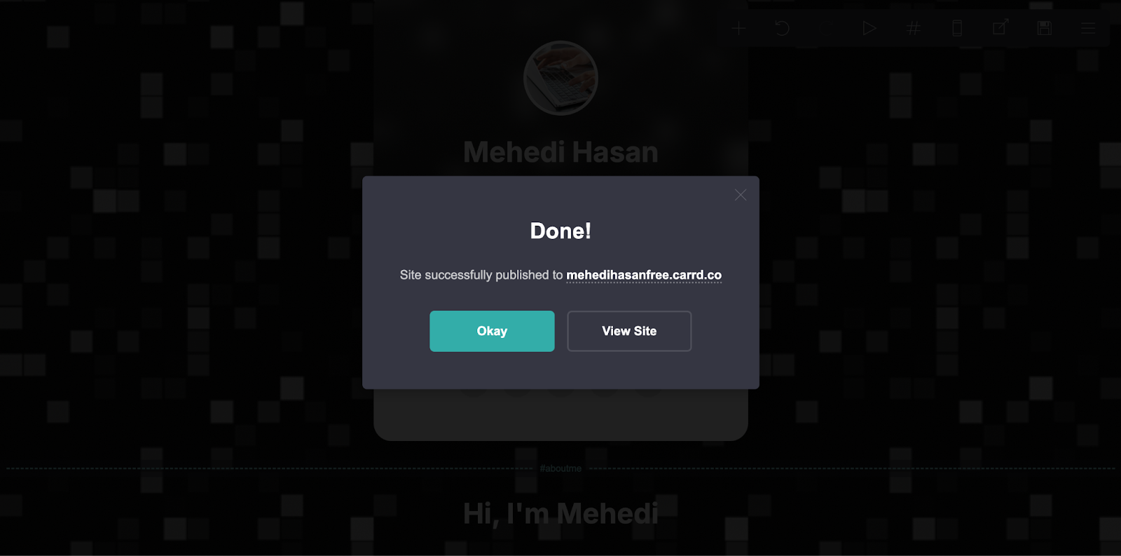 Once you’re done, you can click the Publish button, and your site will be live within seconds!