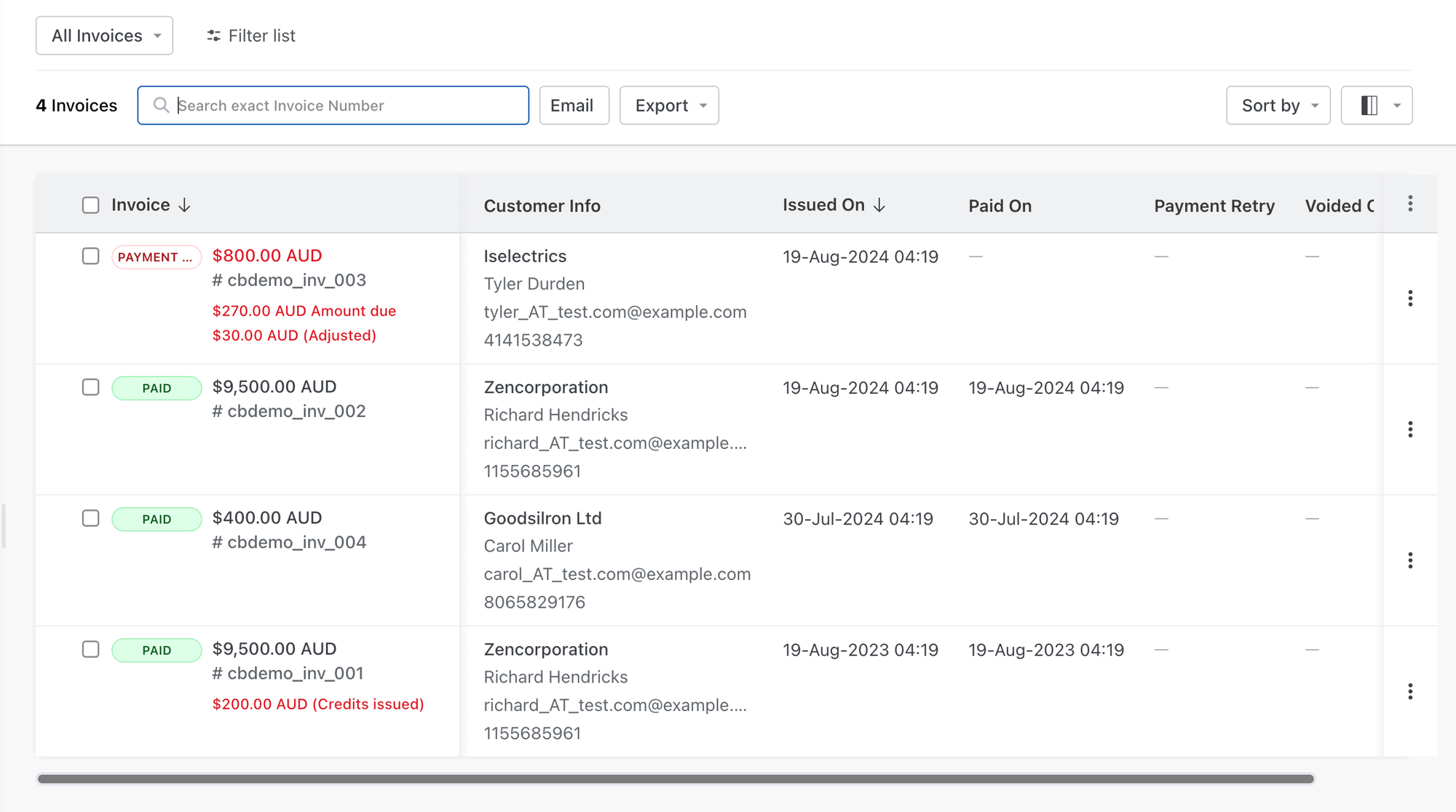 Chargebee provides flexibility in how you bill and present invoices. For example: