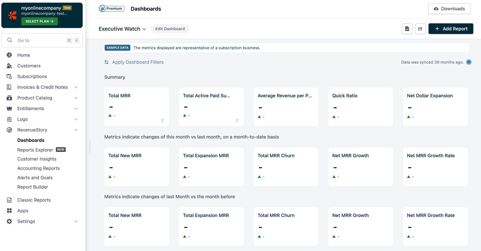 Chargebee automatically calculates taxes and tracks invoice performance in real time. Its RevenueStory dashboard displays metrics like MRR, churn, collections, and failed payments.