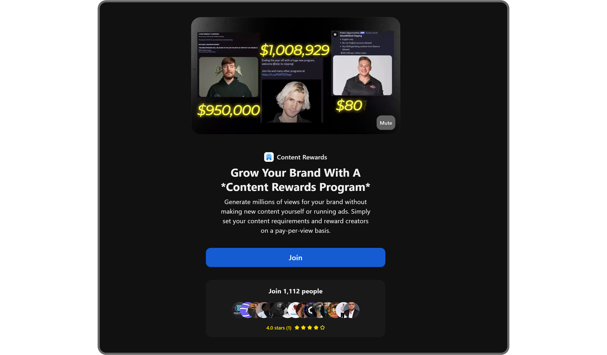 How cheap? I’m glad you asked. Content Rewards clippers are, on average, paid $1 per 1,000 views.