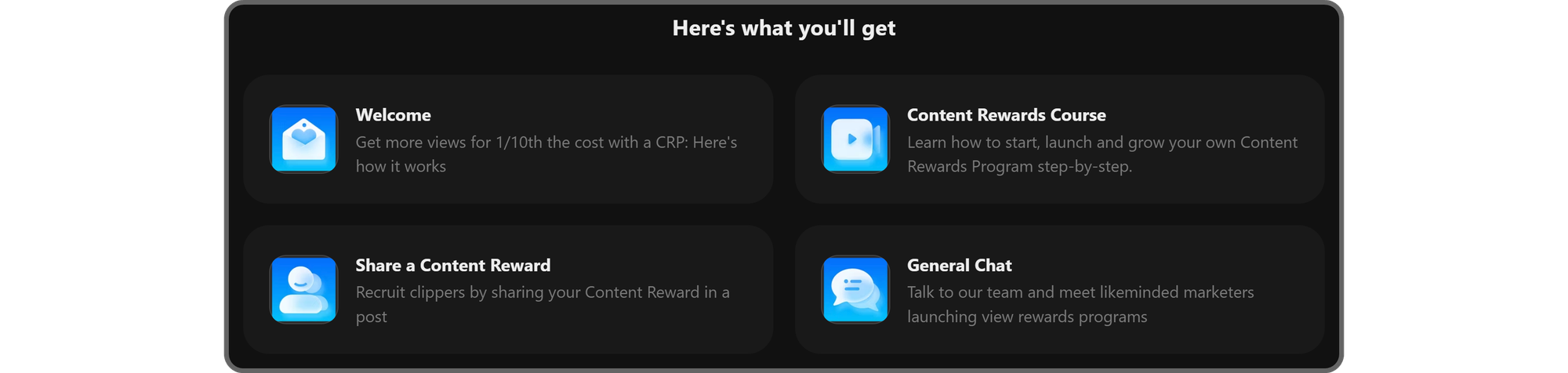 We provide members with a list of clipping communities and show you the ropes of recruiting the right people to promote your bounties. The clippers in the Content Rewards community generate seriously impressive results for creators and brands.