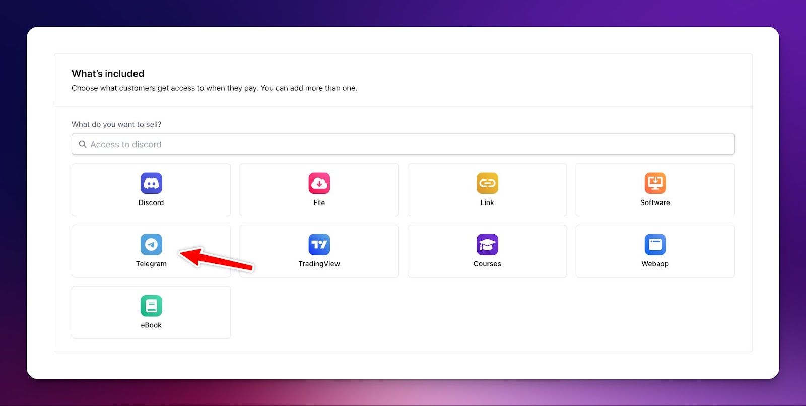 Step 3: Add the “Telegram” experience to the product. Simply click the ‘Telegram” button with the Telegram icon - you can’t miss it!