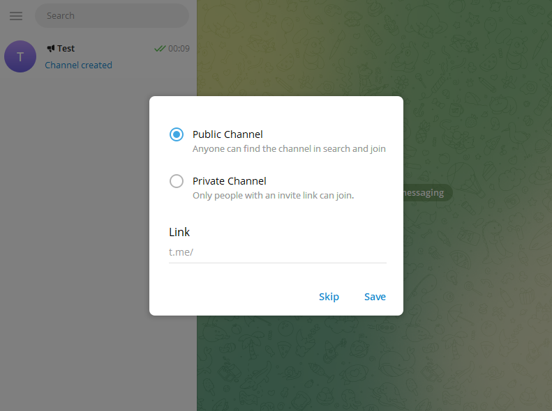 Public Channel: Anyone can find and join this channel using a unique link or by searching on Telegram. If you select this option, you'll also need to set a permanent public link (username) for your channel. This will give you a t.me address you can use to share.