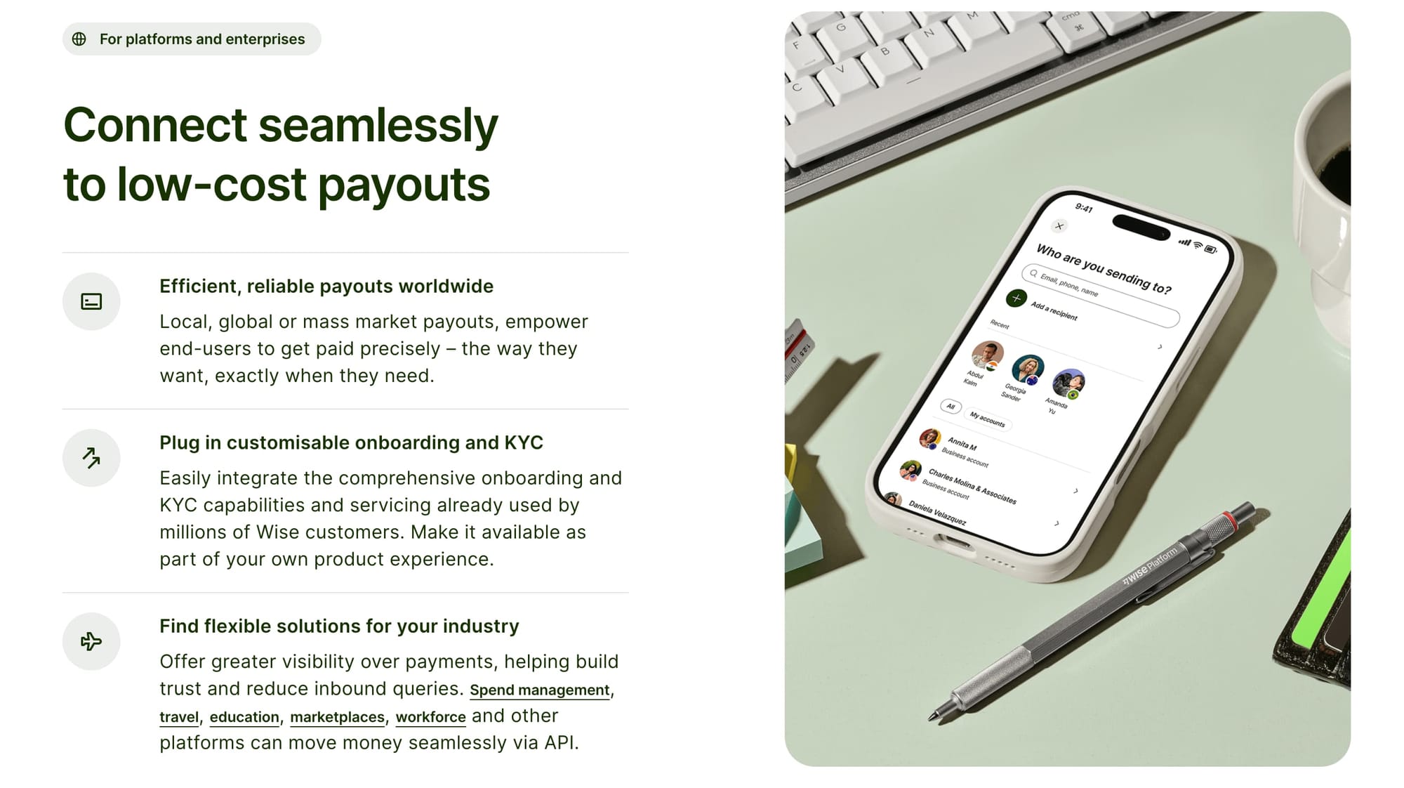 - Suitable for recurring payouts (payroll, contractors)