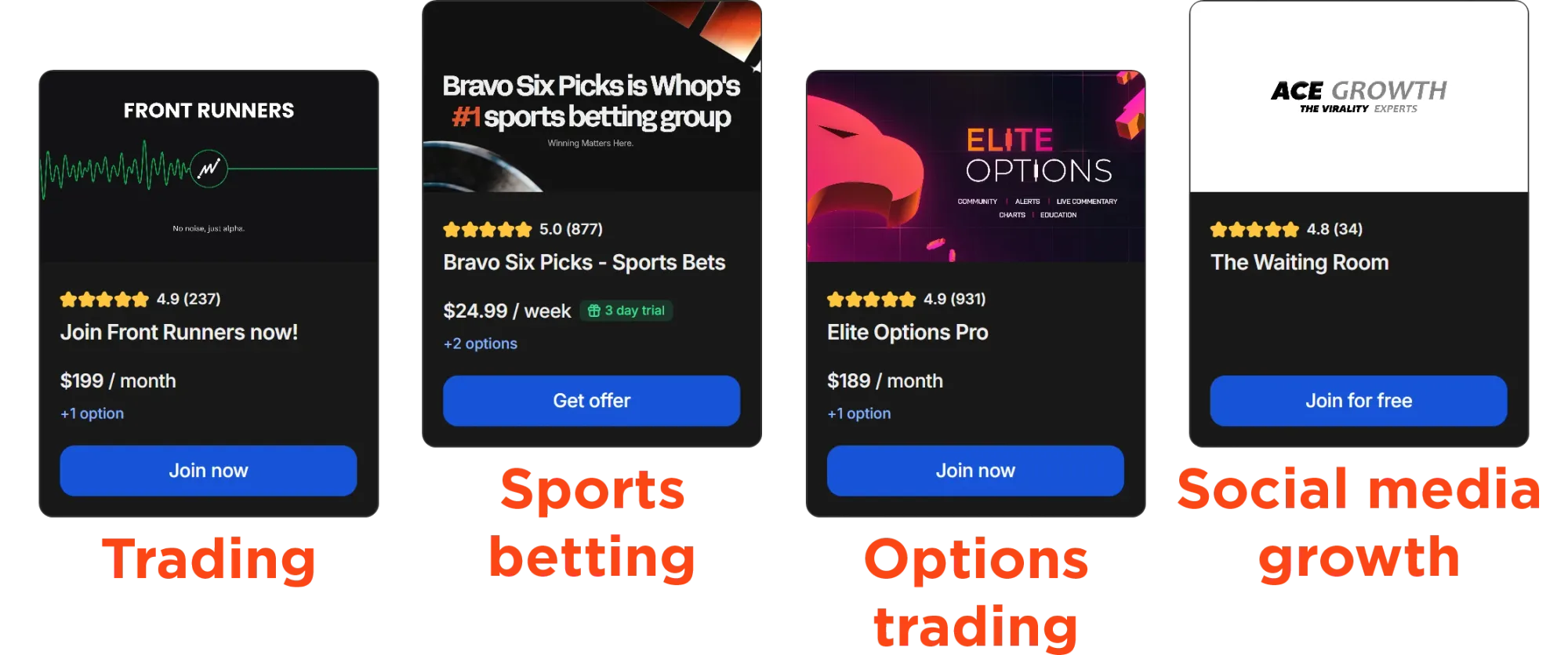 - Can build your entire business on Whop - no more juggling between tools and platforms