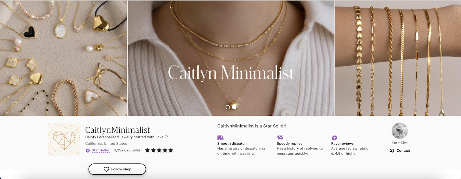 Next up, choose a cover photo that represents your brand in the best possible light. This could be as simple as a montage of product photos, neatly laid out alongside one another. Check out this cover photo from Etsy seller, CaitlynMinimalist, one of the top 1% Etsy sellers with over 3,200,000 Sales.