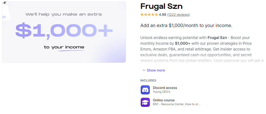 Let’s take a detailed look at what you’ll get by signing up with Frugal Season and joining their Discord community via Whop: