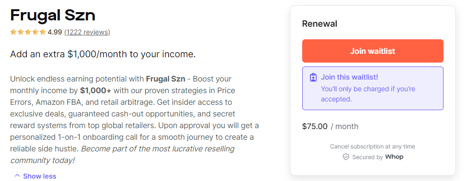 👉 So, if you want to add $1000 or more to your income every month and perhaps even take the leap into entrepreneurship, don’t sleep on Frugal Season. Check out Frugal Season on Whop today, and start hustling!