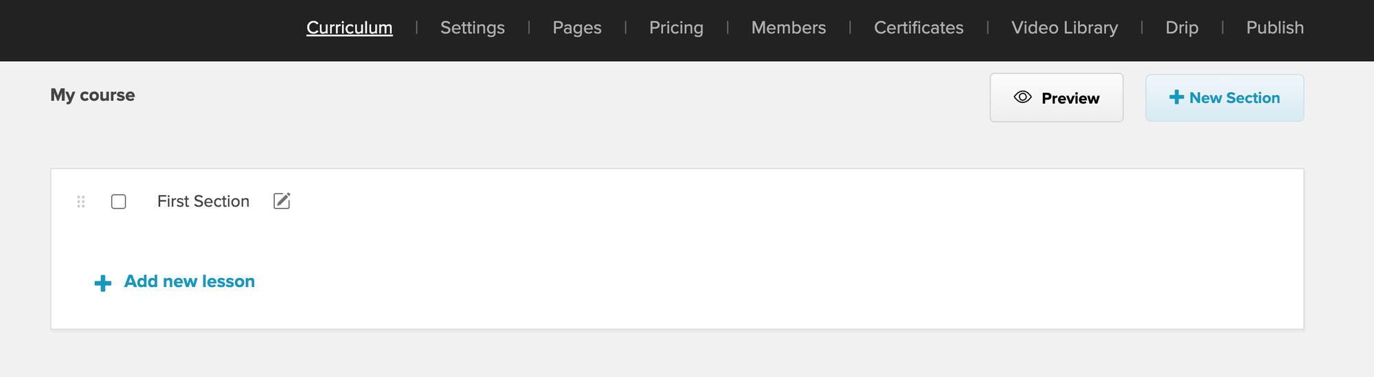 Once you have added your course as a product, you navigate to the bar along the top to upload your thumbnail and author details, add pricing plans (one-time purchase, subscription, payment plan, or free), add certificates for those who complete your course, and create a video library. Here you can also set drip schedules to release your content to students over a period of time.