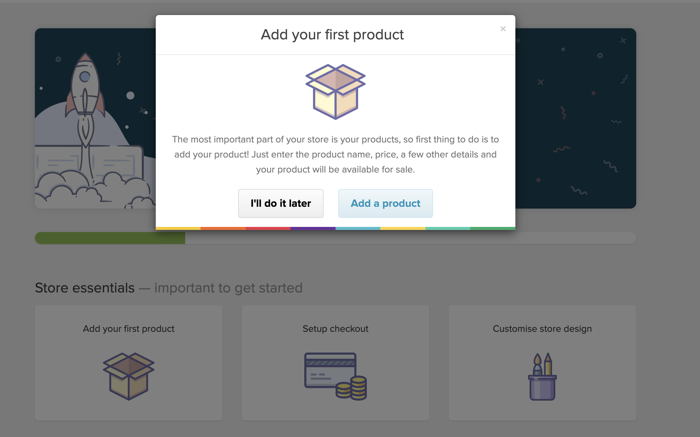 Adding a product seems straightfoward. You start by clicking 'add a product' and the platform outlines what steps you will take in this section, including giving your product a name, price, and 'a few other details'.