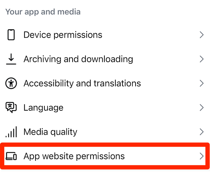 - Head to “Settings and activity (three lines menu)” > "App website permissions."