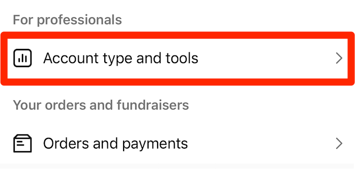 - Scroll down and tap “Account type and tools,” then tap “Switch to professional account” followed by "Next.”