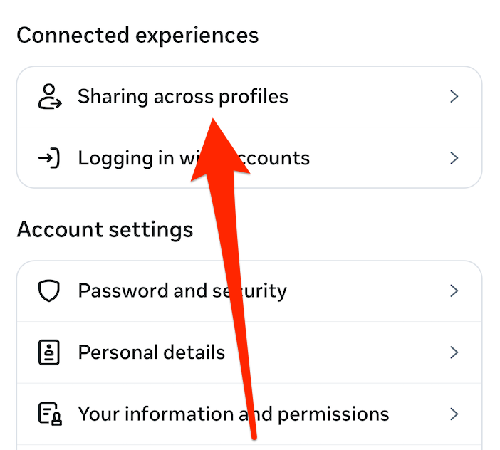 - Go to “Settings and activity (three lines menu)” > "Accounts Center" > "Password and security."