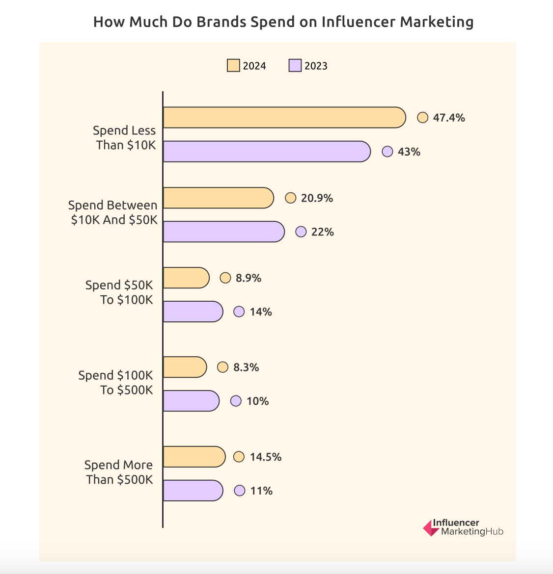 However, a majority of marketers (26%) still planned to spend less than 10% of their marketing budgets on influencer marketing, up from 20% in 2023.