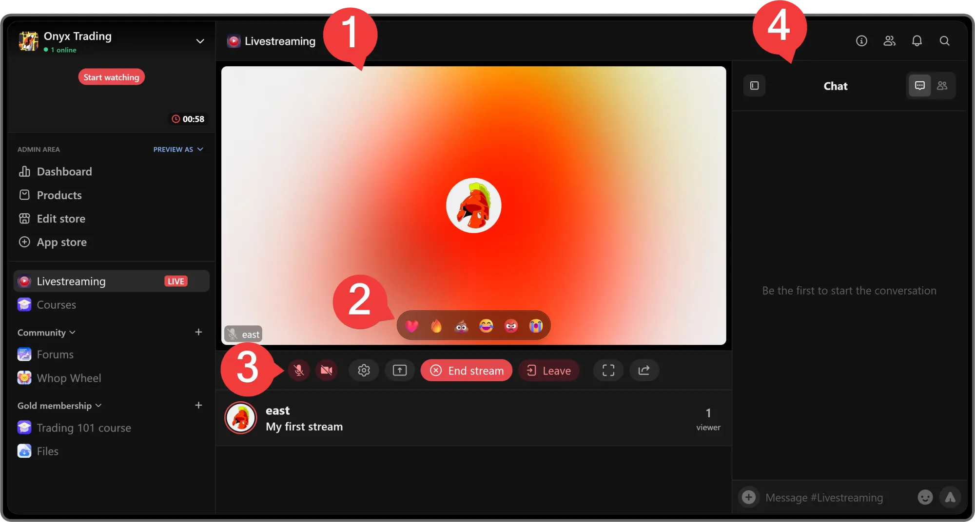 - Integrated community: Your members don’t have to bounce between apps. They can watch your stream, access resources, and connect with your community — all in one place.
