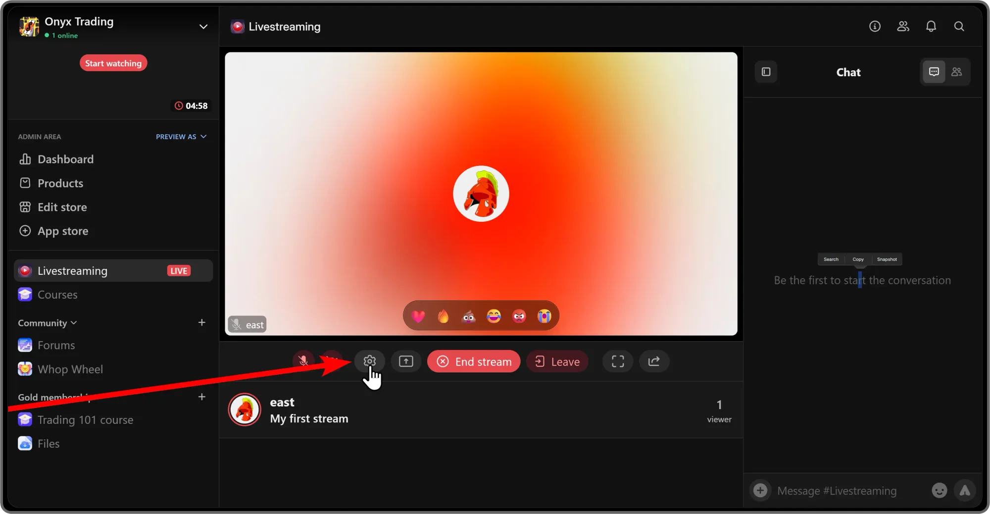 Click the Livestream settings button on Whop. This is going to display the Livestream settings popup.