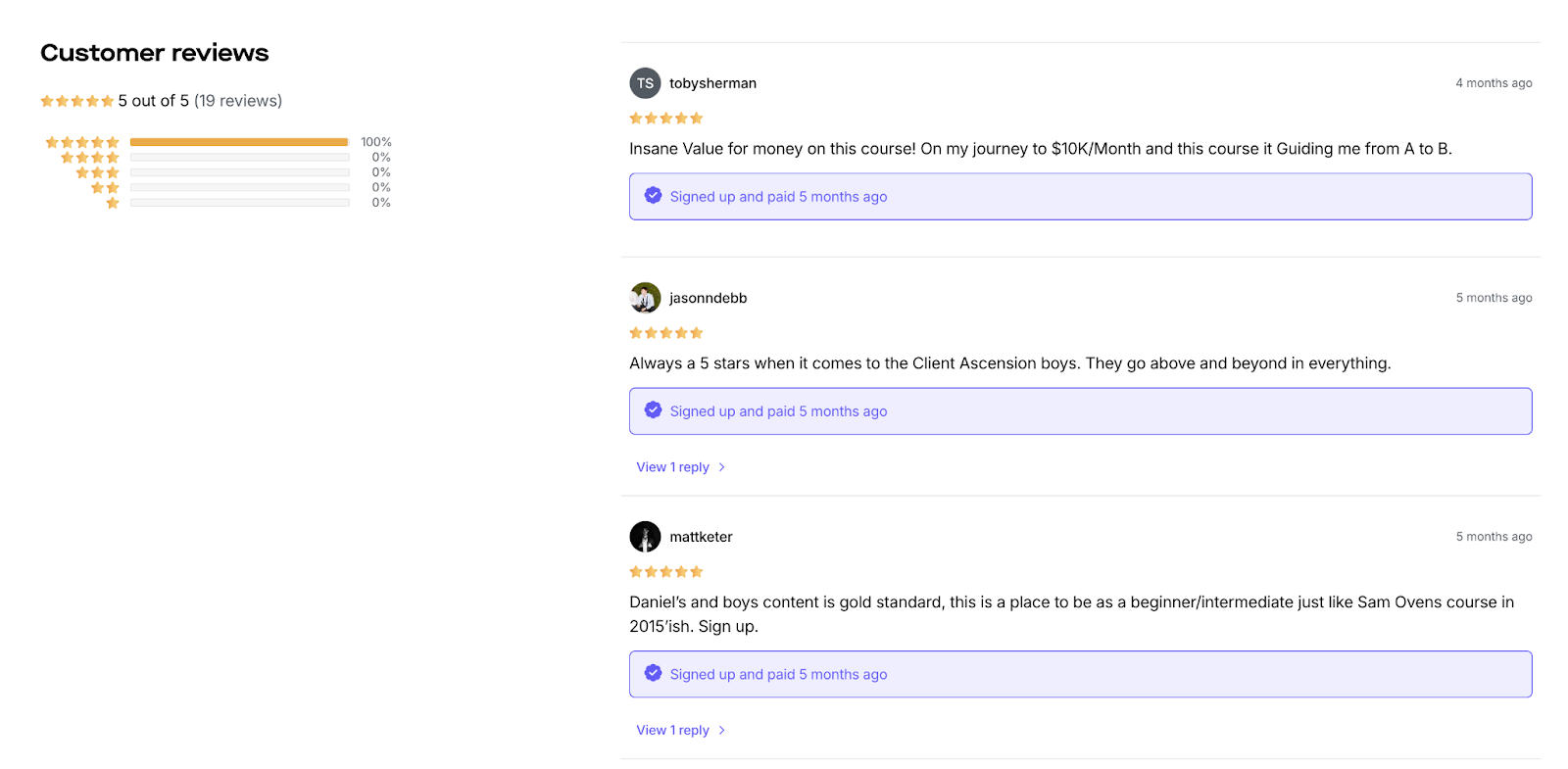Social proof is built in: Showcase reviews, comments, and active members to boost trust and credibility.
