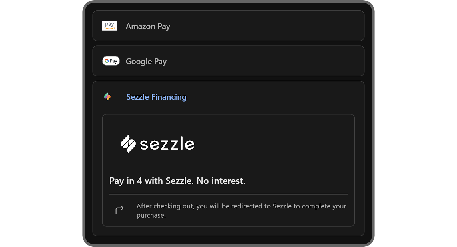 Make it easier for buyers to spend more money. Enable Splitit and Sezzle at checkout and start selling more with flexible, interest-free payment options.