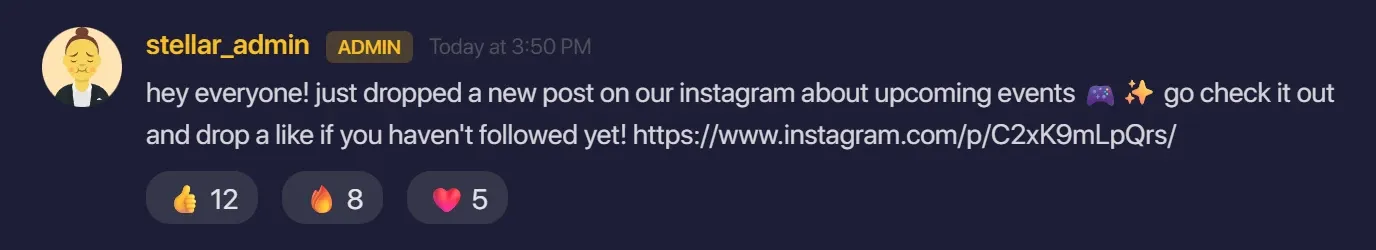Posting something on Instagram can get me likes and some organic comments - but I can do better. When I send my Instagram post to my community, whether via an announcement channel or in a regular chat, my members will both like the post, and comment on it.