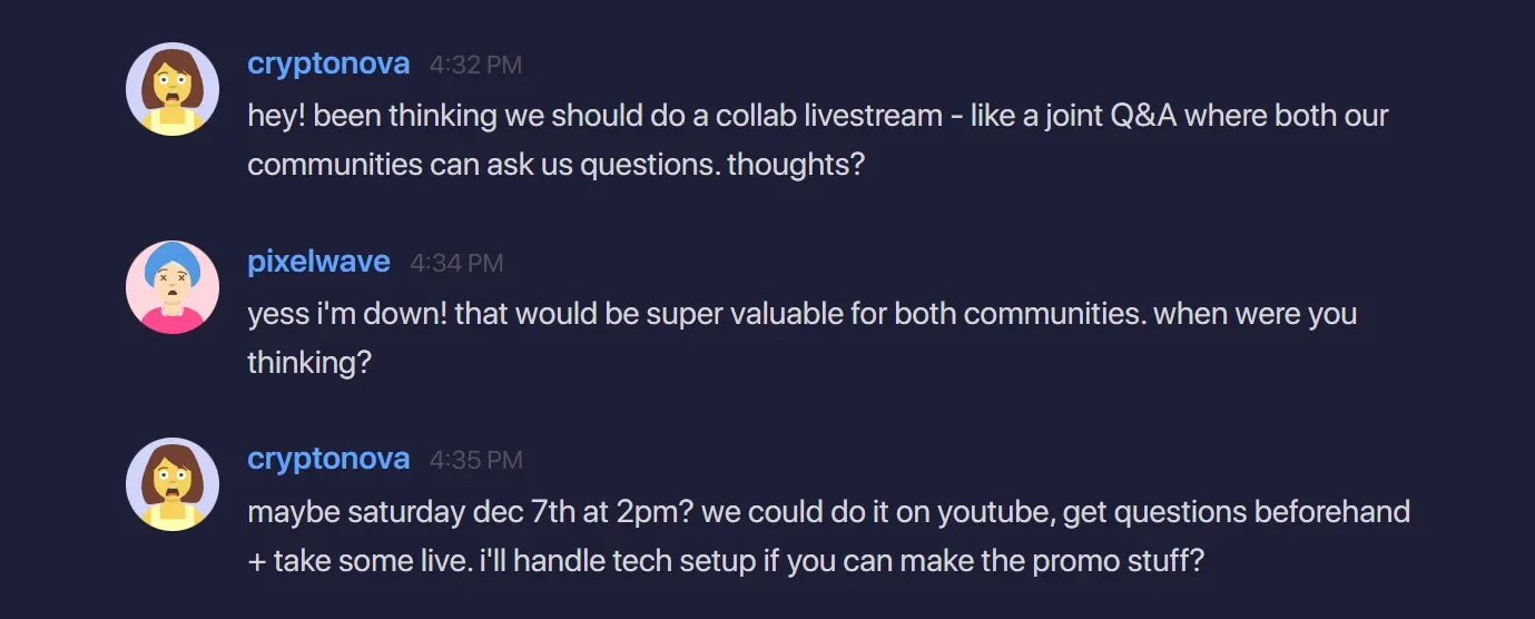 If you're a member of a couple of online communities, there's a high chance you've seen one partnering with another for events, or permanent partnerships where both communities promote each other.