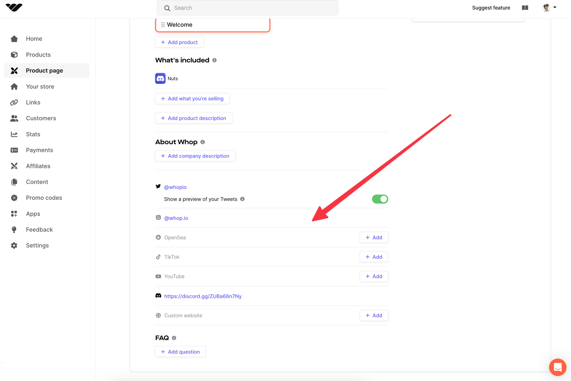 Key takeaways * Annual pricing with discounts, welcome messages, and feedback monitoring work together to reduce churn and boost retention. * Member reviews and social links build credibility that directly improves cart conversion rates and marketplace visibility. * Affiliates and Whop Marketplace listing provide low-cost growth channels to reach new customers automatically. This