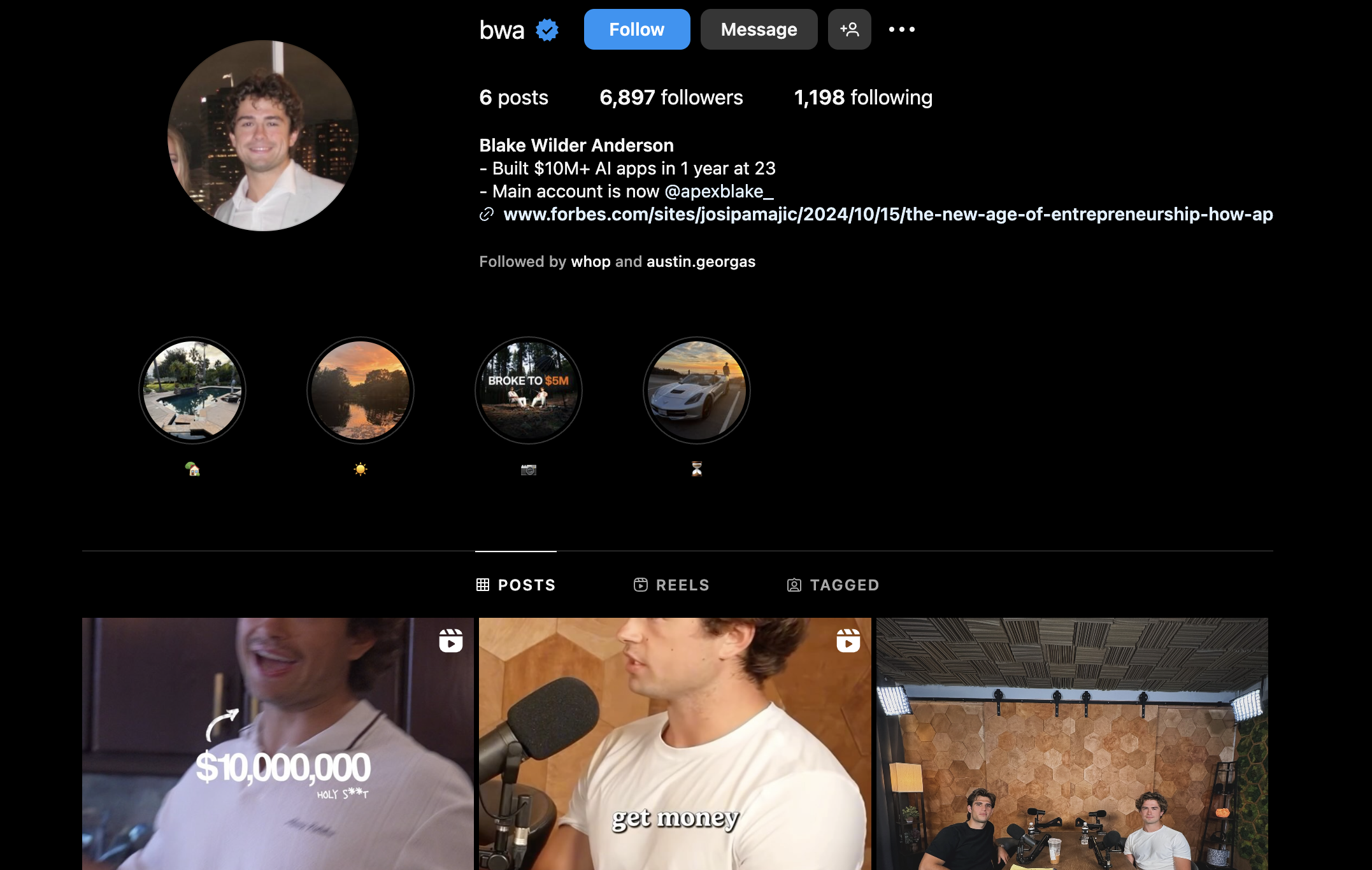 Alex turns that into branding by posting lots of honest content about how he’s achieved it and what it’s like to succeed.
