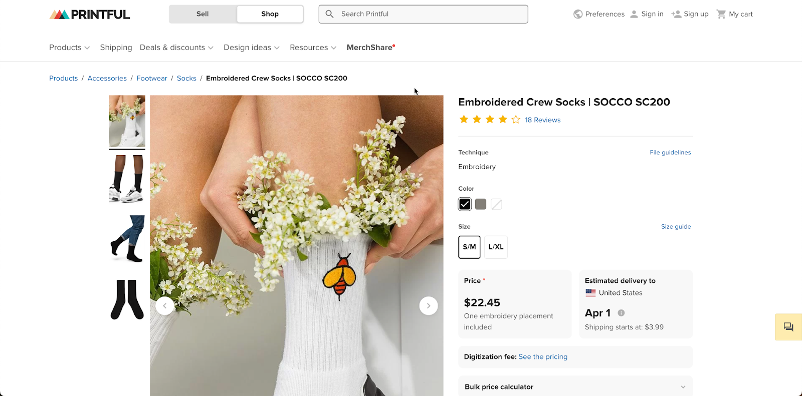 While there are plenty of “performance” athletic sock brands and specialty fabrics like wool, socks can be a fun stocking stuffer-type product for simple designs. Especially because of the embroidery, print-on-demand socks are viewed as a premium option so you can command higher prices and customers won’t be opposed.