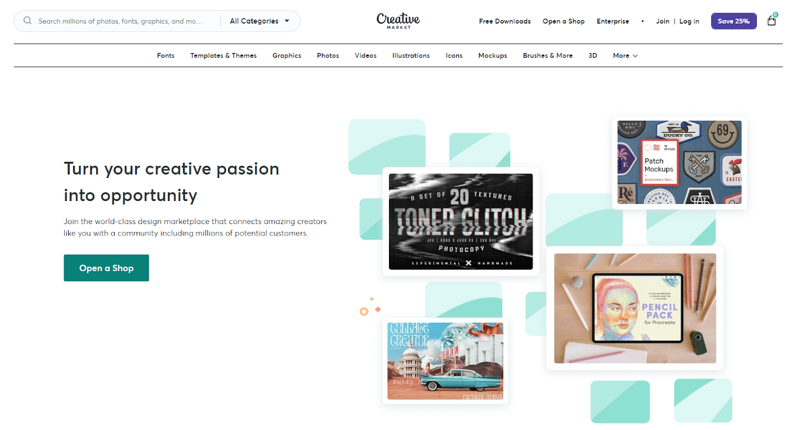 | Creative Market | 50% commission | Visual design assets | Flexible licenses, affiliate system, large creative audience |