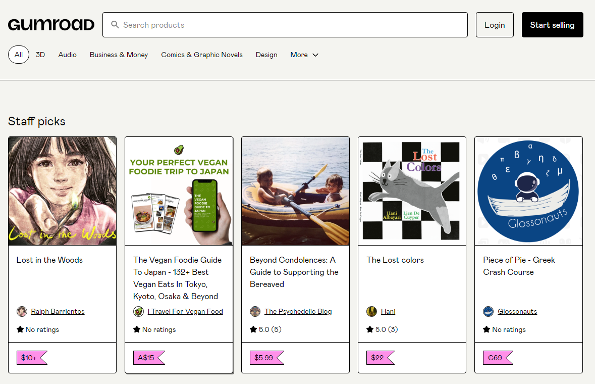 Gumroad has been around since 2012, which makes it one of the oldest online sales platforms on this list. Gumroad is a gateway platform for anyone who’s never tried to sell a product online before, and it's more focused on selling a single thing, such as an ebook, videos, software, design templates, or photos. There's a marked angle toward creativity as opposed to genres like ecommerce or finance.