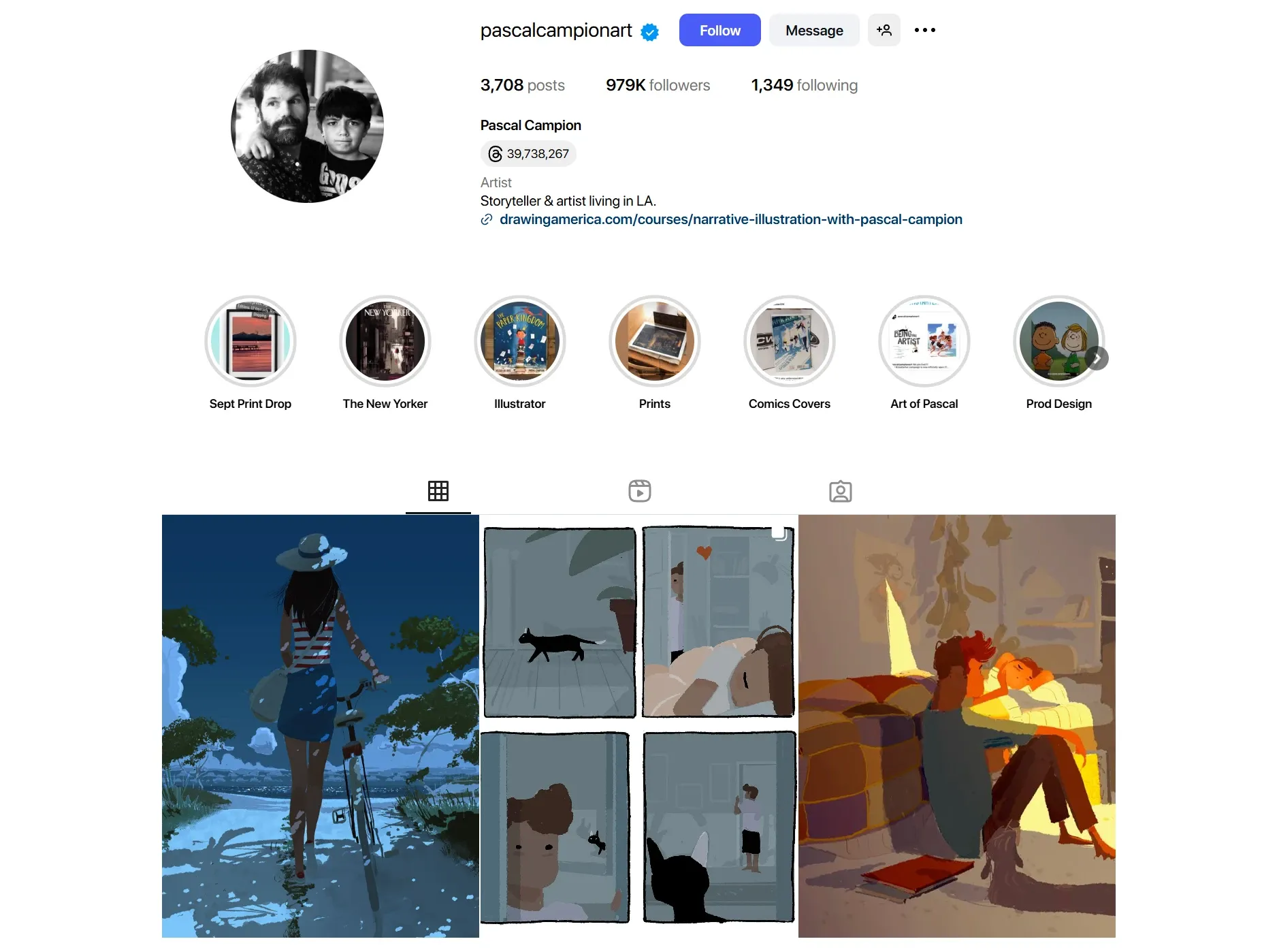 Pascal Campion (@pascalcampionart) is known for his digital illustrations of everyday moments. He currently sells drawing tools, and various online courses on digital drawing.