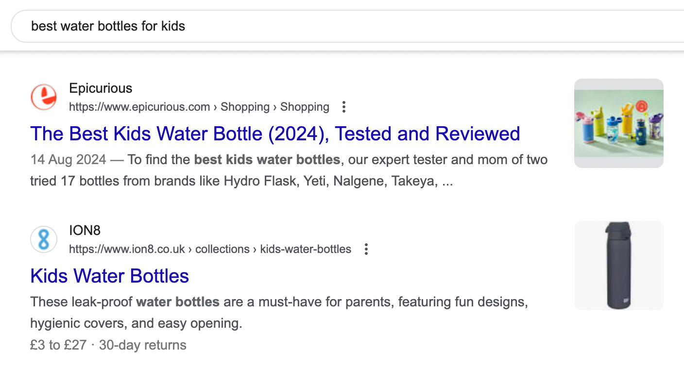 These results are proactively targeting people who are in the market to buy water bottles for kids.