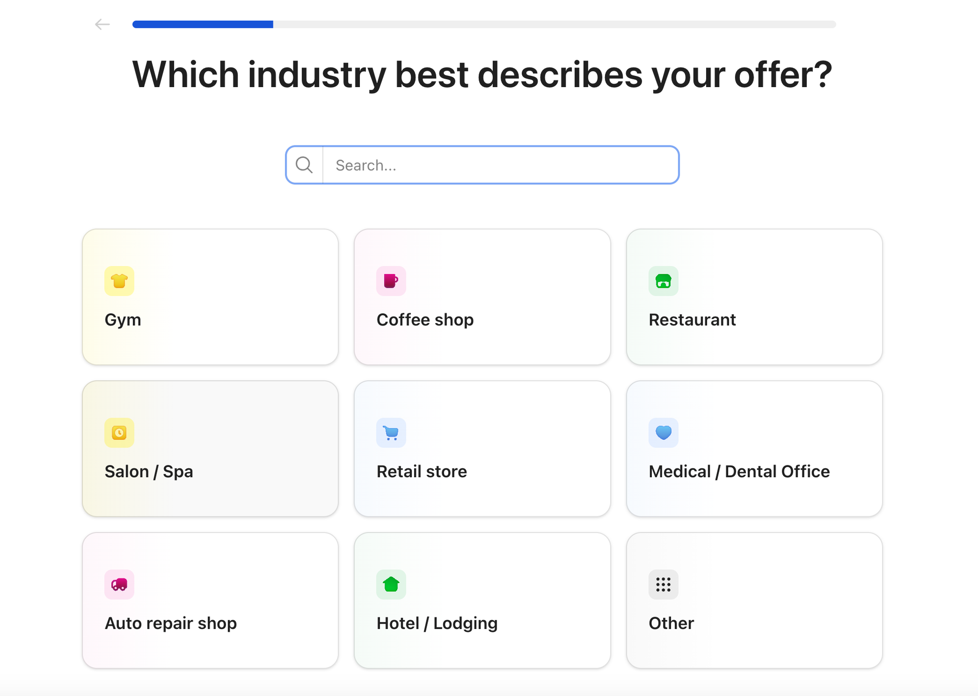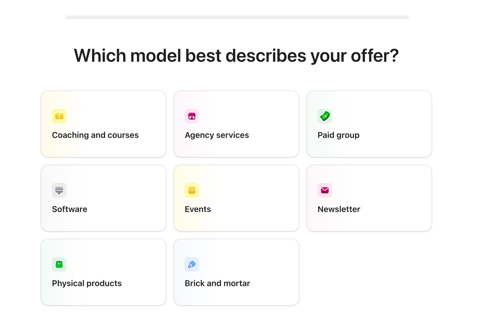 You can create a whop for any kind of business. For the sake of this walkthrough, let's say that you run a massage service. Choose 'brick and mortar' and you will then be directed to the 'industry' screen.