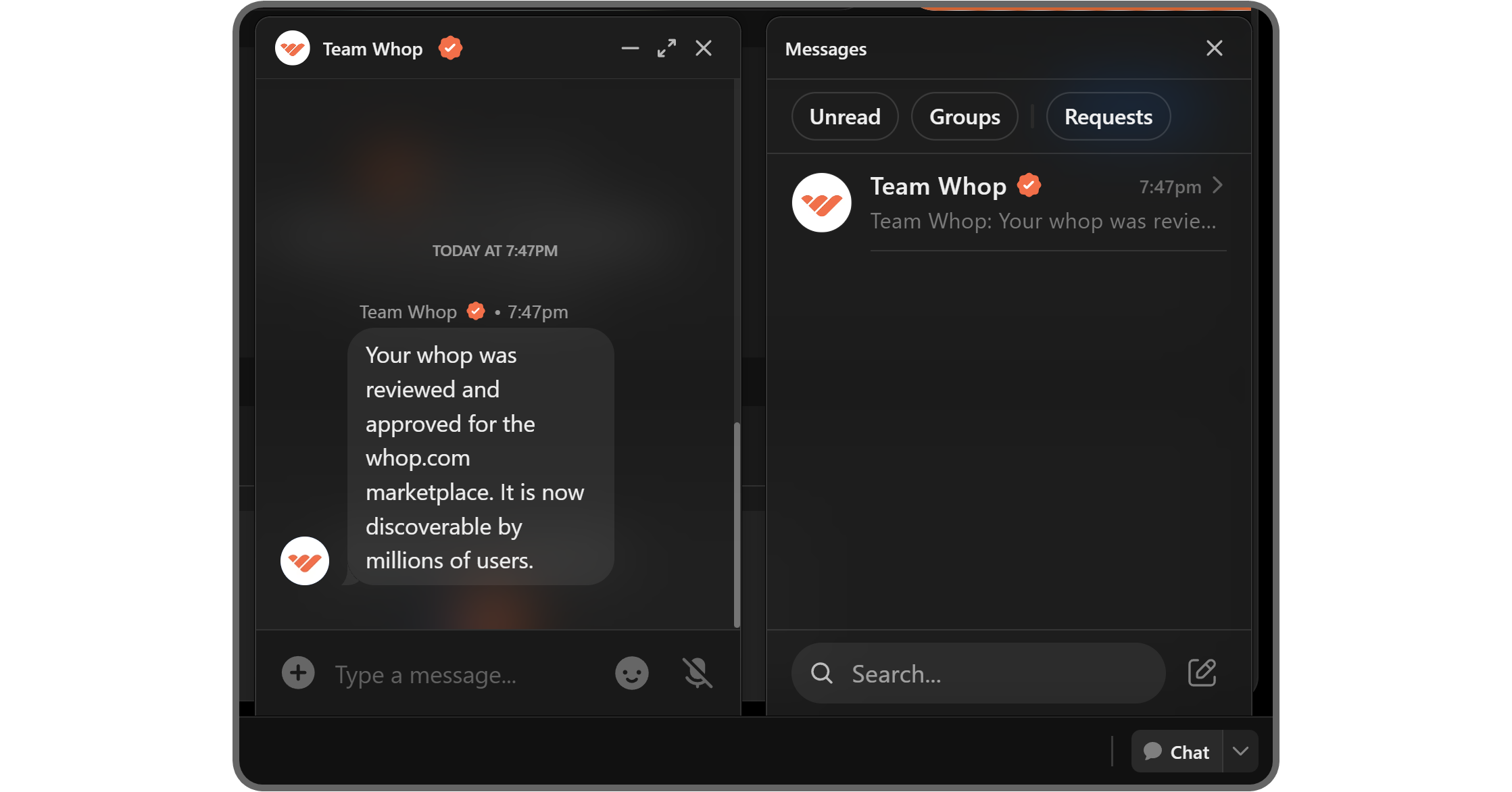 That's it - now, your members can go to the Chat section of your whop and start talking to each other, and you.