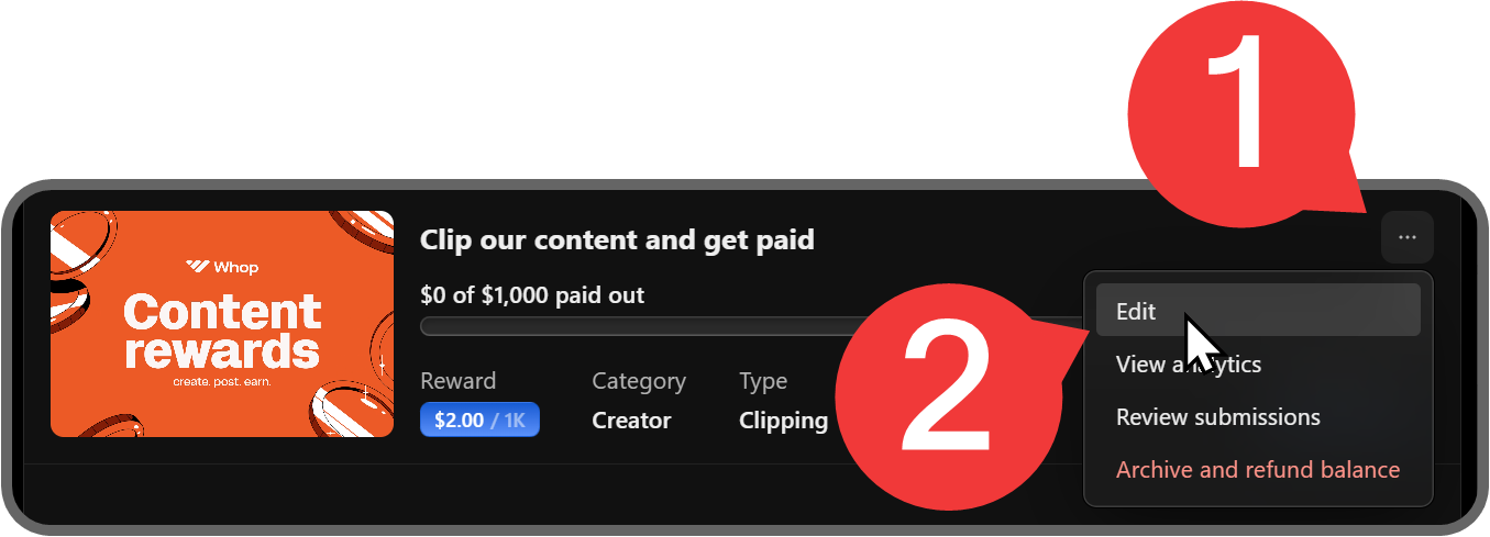 Outside of your whop, you should also promote your content reward campaign on social media, email your users, and try to spread the word as much as possible.