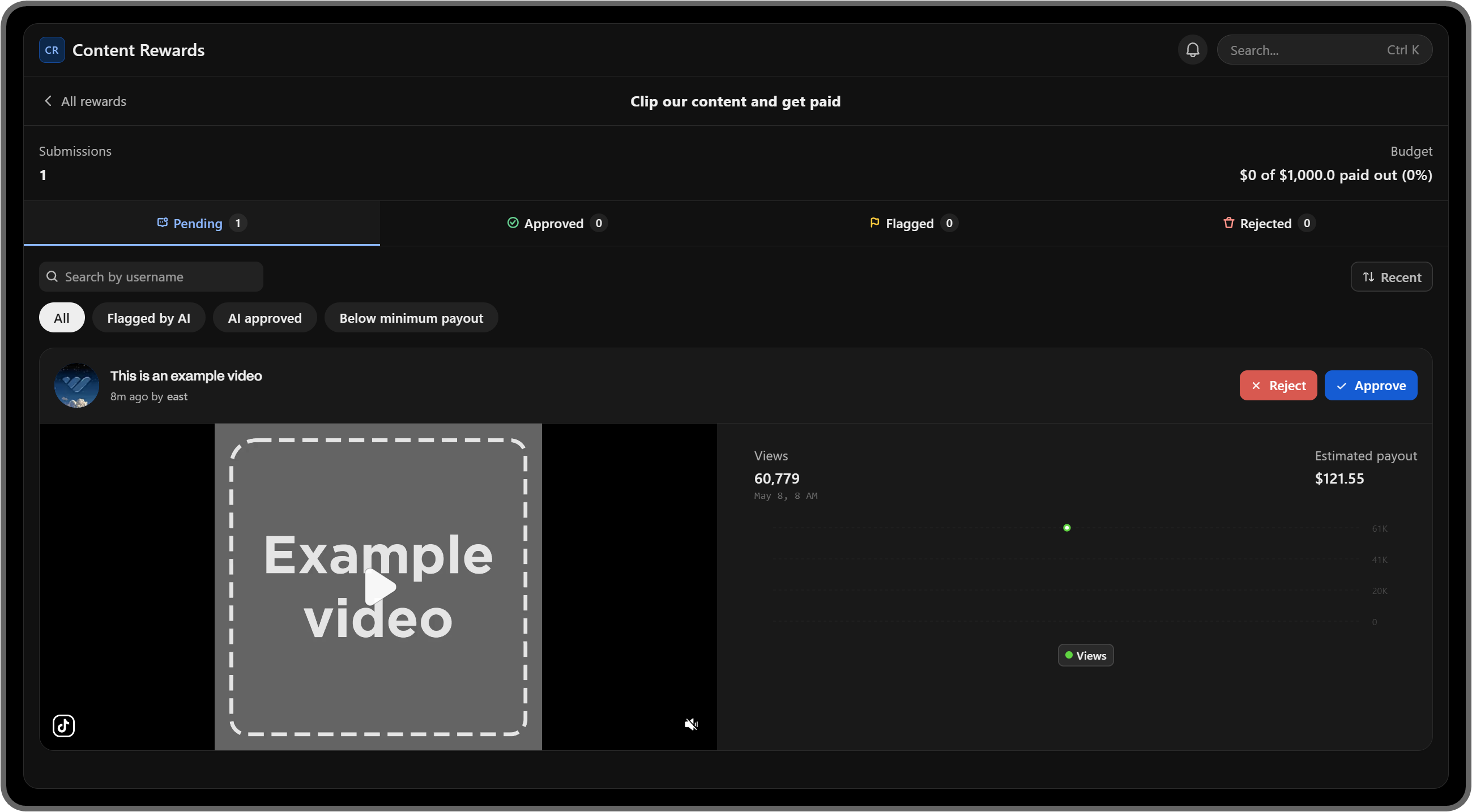 - You can create and launch a content reward campaign in under three minutes with flexible budget options.