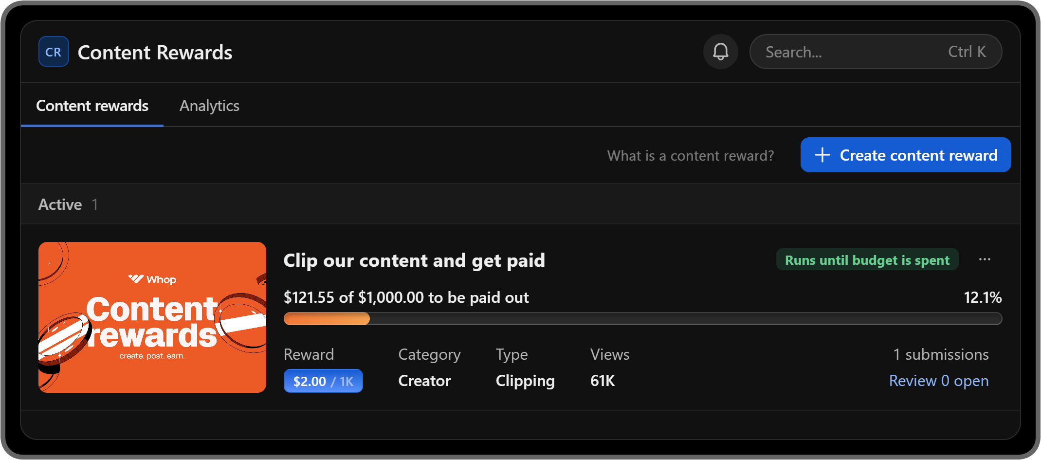 Content Rewards is a very powerful feature of Whop, and it's easier to set up than you might think. Learn how to use Content Rewards as a creator in this guide.