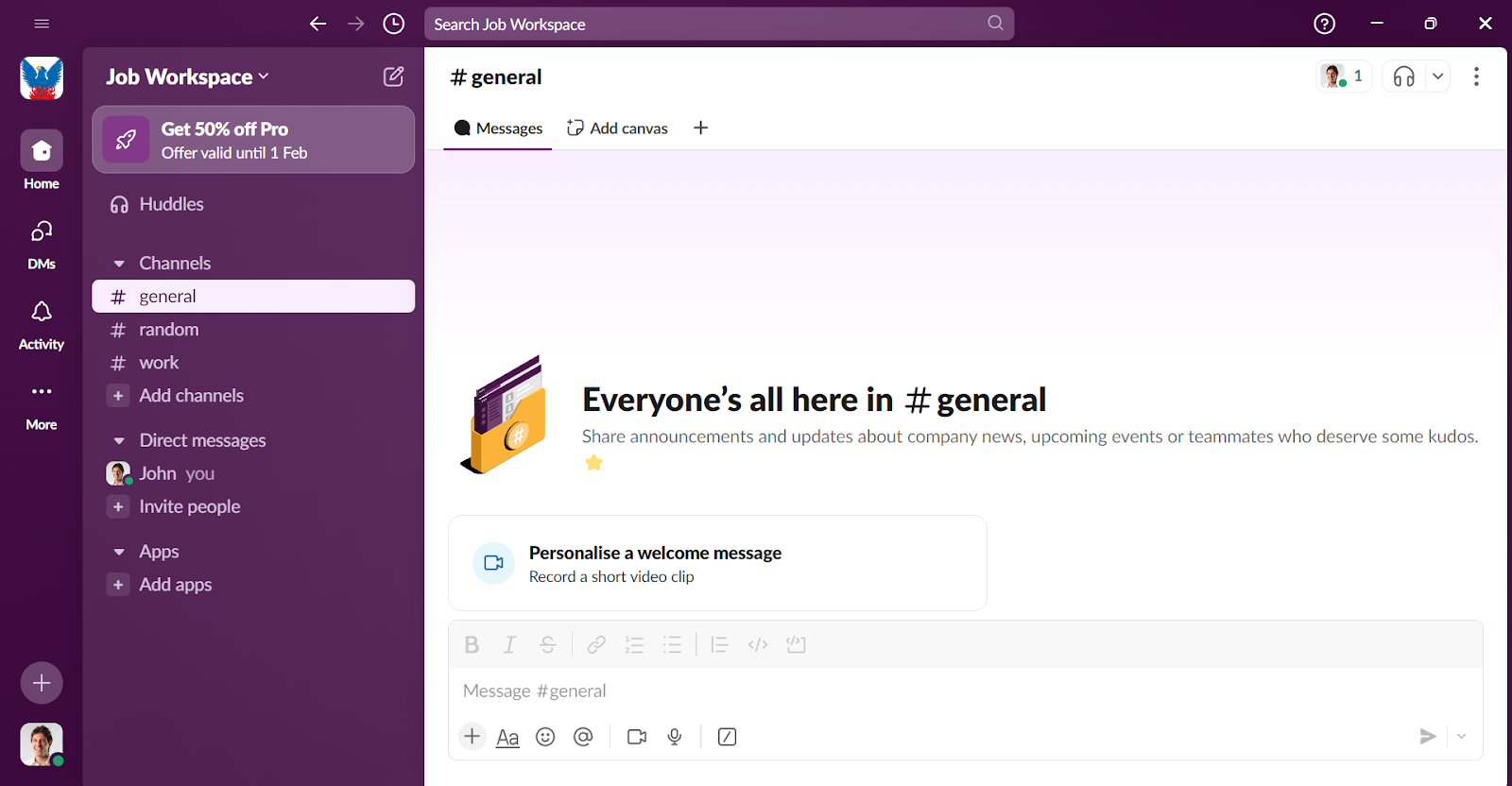 - Explore channels and start messaging: You can now browse and interact with team members. Slack allows you to communicate with colleagues by sending them direct Messages (DMs) or messaging them on a channel.