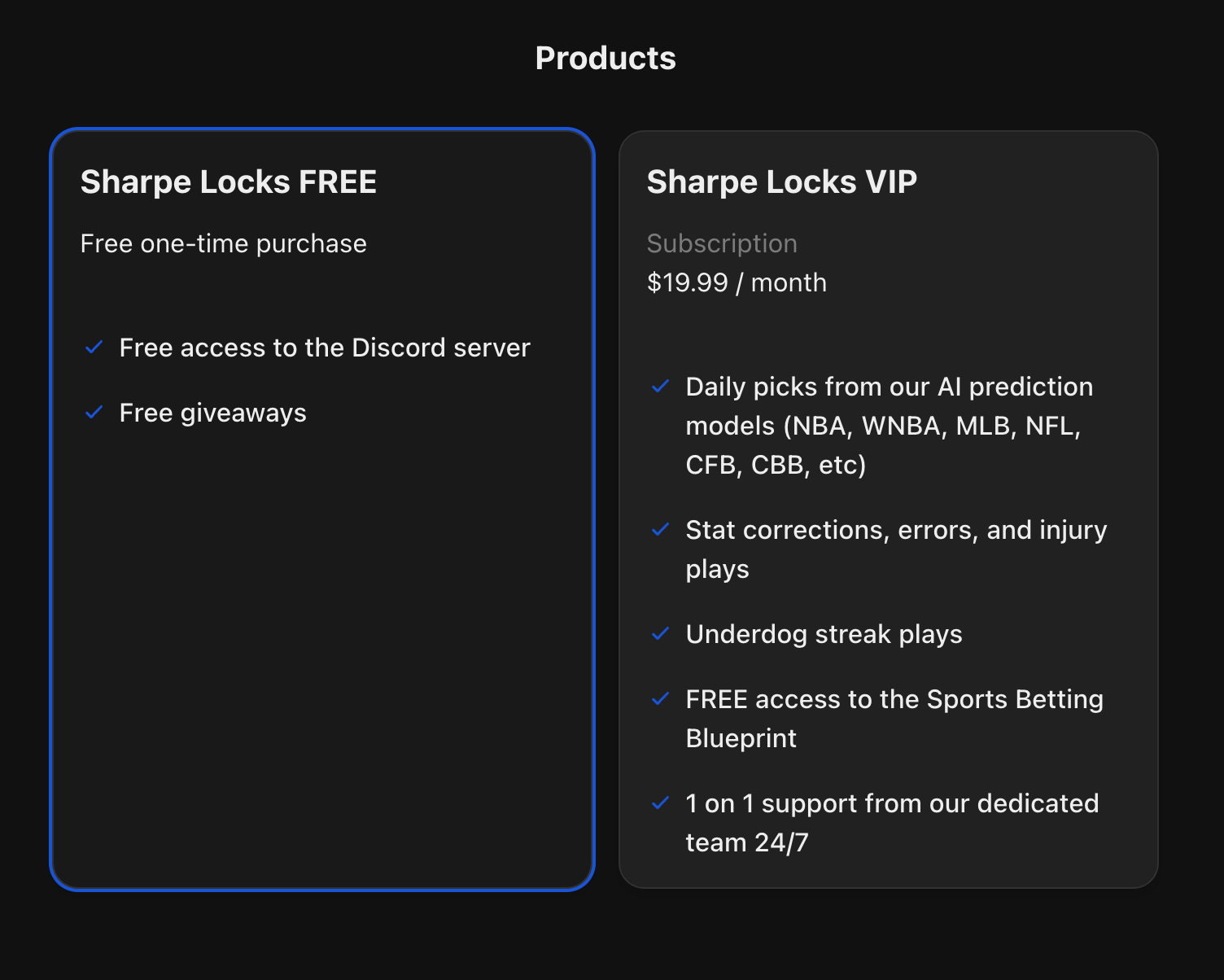 - Pro Bettor Course: Teach members your full system step-by-step, from bankroll management to researching picks.