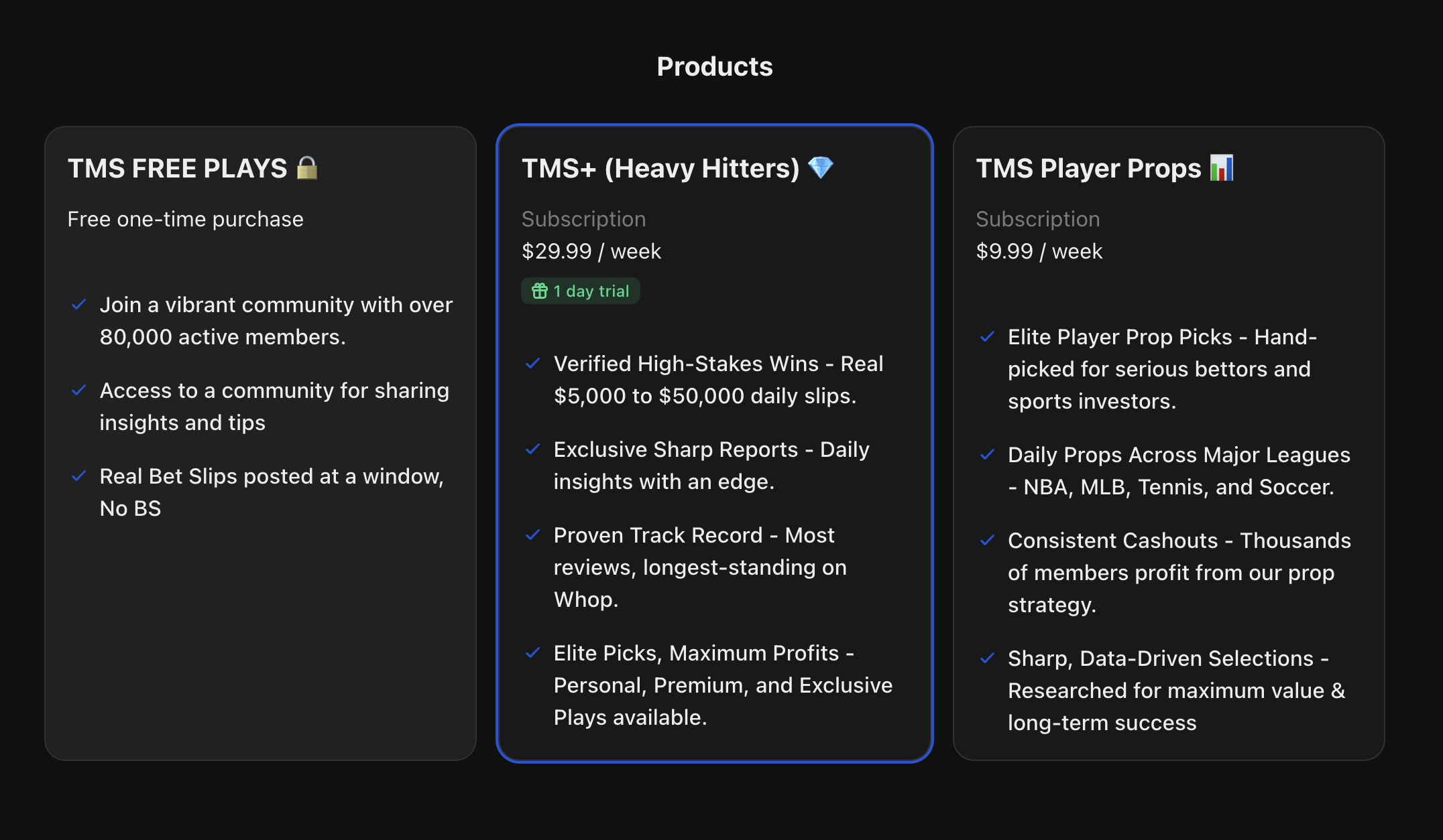 Join these free sports betting communities on Whop for real examples of how the pros promote and sell their paid offers: