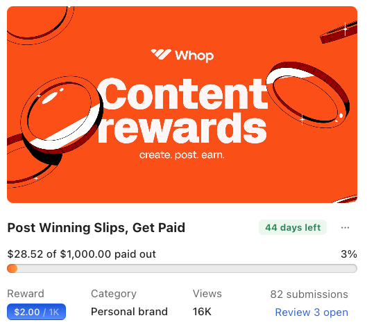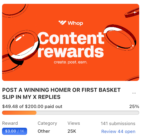 To get your account off the ground, encourage people to engage with your posts and put your money where your mouth is. Here’s how the biggest sports communities on Whop are doing it: